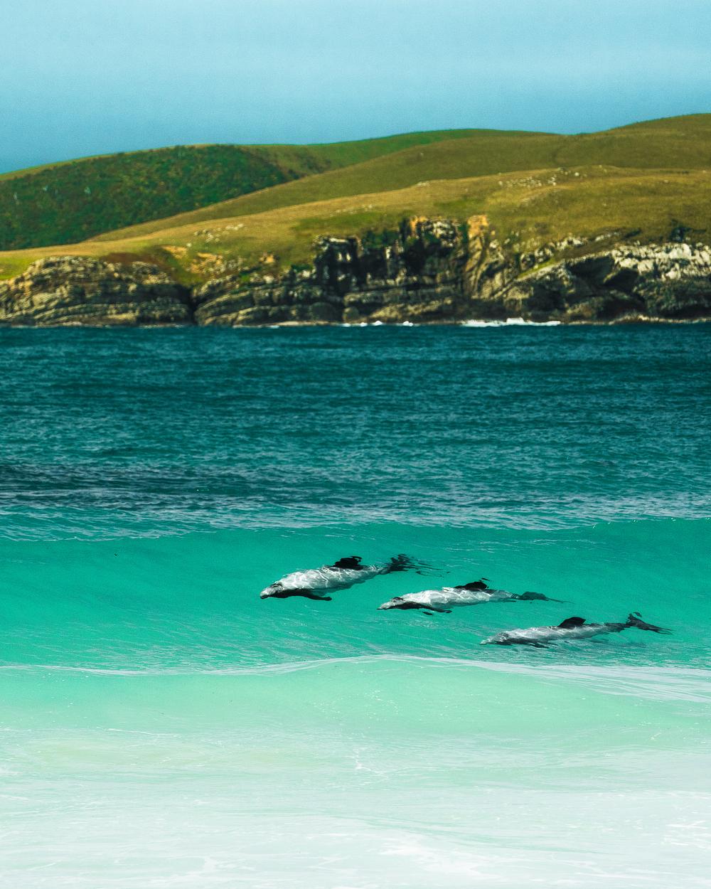 Hector Dolphin's Surf a New Zealand Wave